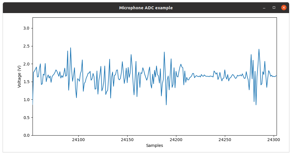adc/microphone_adc - Read analog values from a microphone and plot the measured sound amplitude. i2c/bmp280_i2c - Read and convert temperature and pressure data from a BMP280 sensor, attached to an I2C bus. i2c/lis3dh_i2c - Read acceleration and temperature value from a LIS3DH sensor via I2C i2c/mcp9808_i2c - Read temperature, set limits and raise alerts when limits are surpassed. i2c/mma8451_i2c - Read acceleration from a MMA8451 accelerometer and set range and precision for the data. i2c/mpl3115a2_i2c - Interface with an MPL3115A2 altimeter, exploring interrupts and advanced board features, via I2C. i2c/oled_i2c - Convert and display a bitmap on a 128x32 SSD1306-driven OLED display i2c/pa1010d_i2c - Read GPS location data, parse and display data via I2C. i2c/pcf8523_i2c - Read time and date values from a real time clock. Set current time and alarms on it. uart/lcd_uart - Display text and symbols on a 16x02 RGB LCD display via UART